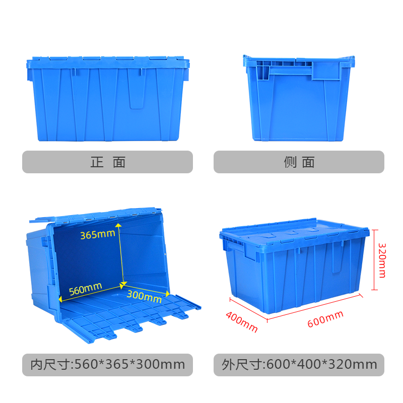 特点:全新料生产,有韧性,寿命长,开盖可套叠,关盖可堆码,节省空间,降低物流成本